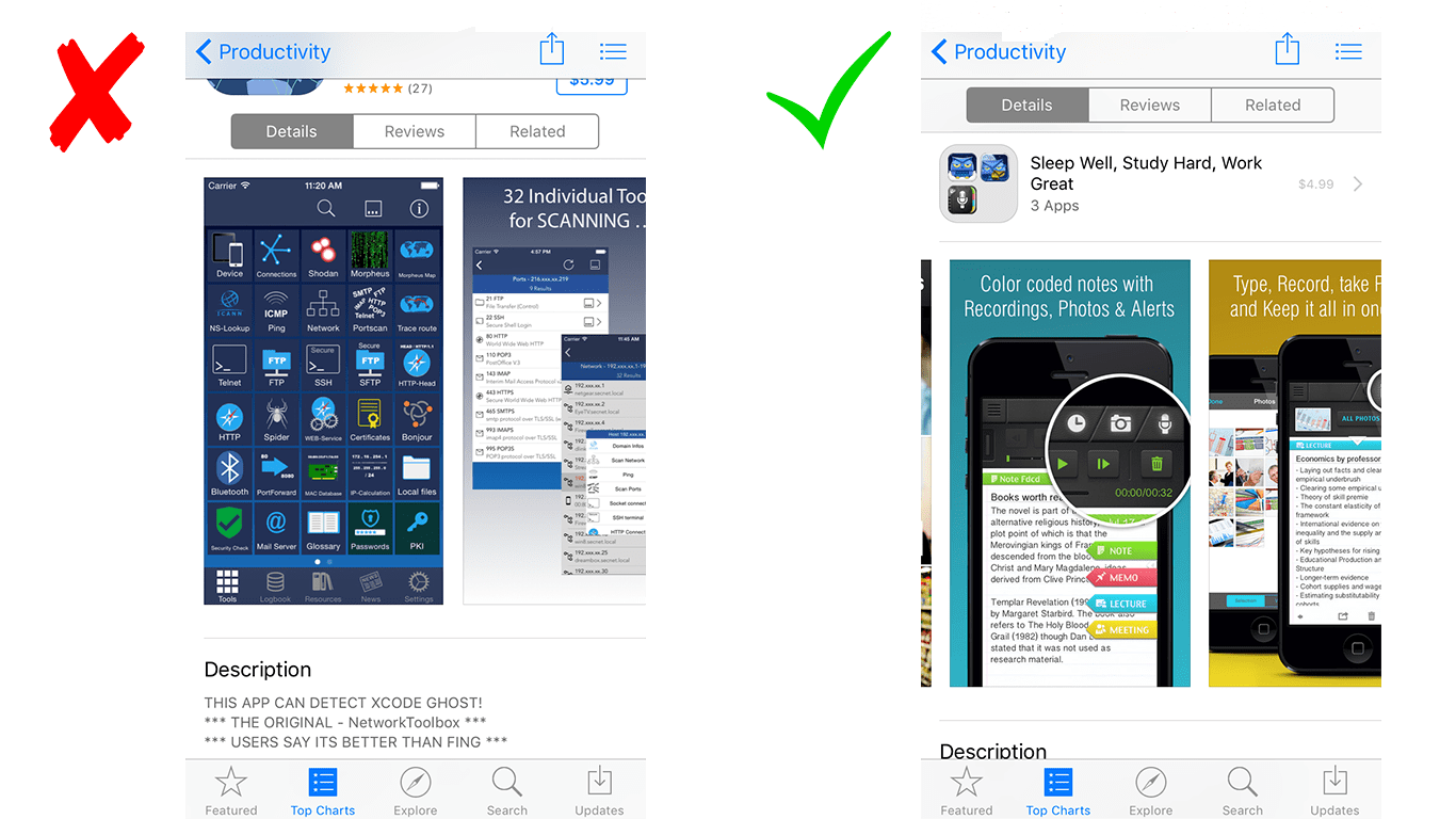 The best screenshots clarify your apps unique value.