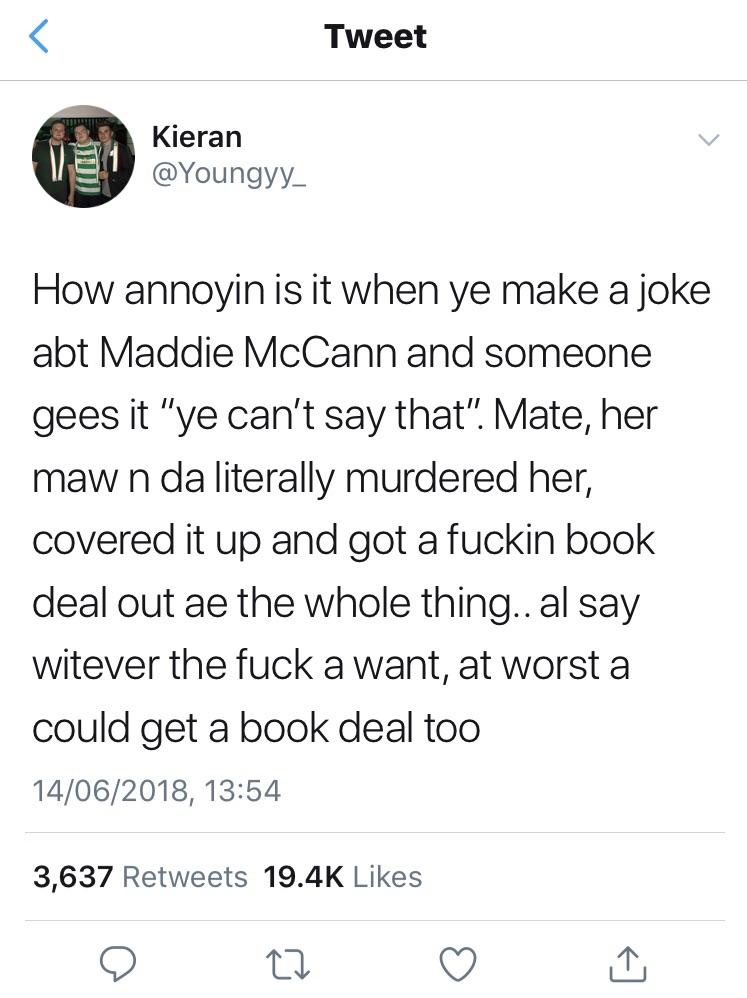 Madeleine mccann jokes reddit. An english twitterer who used the handle old holborn quickly became known for his offensive jokes for example he tweeted a picture of two. Breaking headlines and latest news from the uk and the world.