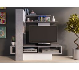 Meuble Tv Contemporain Blanc Et Decor Beton Achat Vente Pas Cher