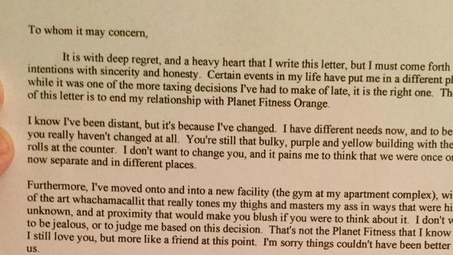 Planet Fitness Man Cancels Gym Membership With Hilarious Breakup Letter