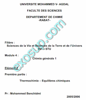 Cours De Thermochimie Smpc S1 Fichier Pdf